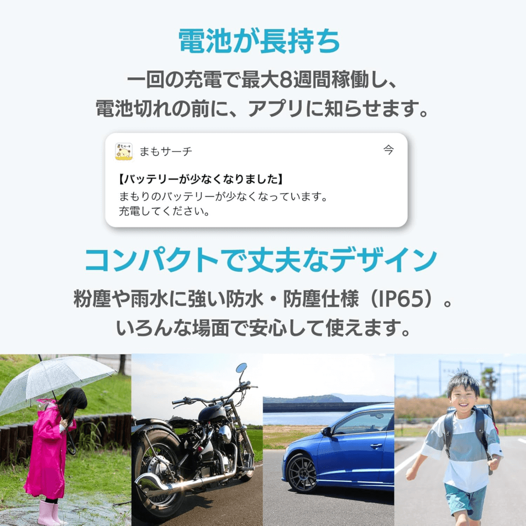 「まもサーチ3」は、ペット用ソフトカバー、車載ケース(車の盗難防止)といったオプションが用意されています。類似のサービスを提供する他のメーカーは子どもの見守りのみにターゲットをしぼっていますが、「まもサーチ3」はオプションにより様々な使い方ができるようになっています。