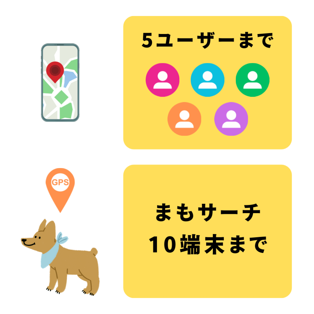 スマートフォン アプリには、まもサーチ3を10台まで登録ができるのでペットを多頭飼いしている場合でも安心して利用できますね。